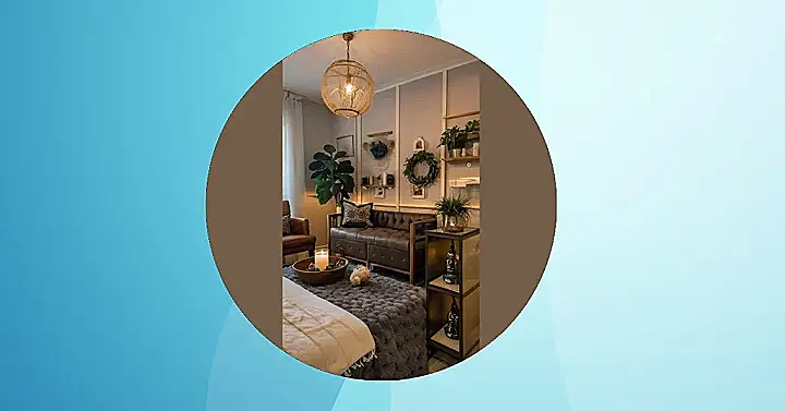 This room is like a chill hangout spot straight out of a magazine, but way more comfy. The blue couch looks like it’s giving you a hug just by looking at it, and the plant art on the wall totally brightens things up. It’s inspiring because it proves you can have a stylish room without needing, like, a million dollars or a degree in interior design.