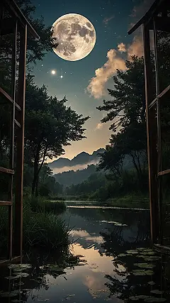 Imagine waking up to this view every morning! It’s like stepping into a fairytale with the moon shining bright and the water reflecting the beautiful night sky. You can almost feel the cool breeze and hear the gentle rustling of leaves in the trees. This picture is like a peaceful escape from the hustle and bustle of everyday life, perfect for a relaxing lock screen.