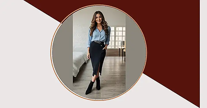 This girl is totally rocking the skirt look! She’s got a classic brown pencil skirt that makes her legs look super long. It’s like she’s ready to conquer the world, one stylish step at a time. And that cute top? It adds just the right amount of casual chic. This outfit is perfect for a fancy school dance, a night out with friends, or even a day at the office!