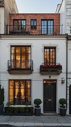 This isn’t your grandma’s townhouse (unless your grandma is super stylish). Those wide windows let in tons of sunshine, making the whole place feel bright and airy. It looks super modern, but those classic lines give it a touch of old-school charm too, a bit like combining a fancy cupcake with a comfy pair of sweatpants – the best of both worlds! You can practically feel the luxurious vibes just by looking at it; just picture yourself lounging on the balcony, sipping lemonade – pure bliss.