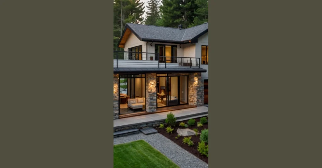 This place looks like it’s straight out of a movie, where the main character has their life totally together… except maybe for that one embarrassing secret. Seriously, who wouldn’t want to chill on that balcony, looking like a sophisticated genius plotting world domination (or just studying for a pop quiz)? The stone and glass combo is super cool, giving off major “I’m modern but also connected to nature” vibes.