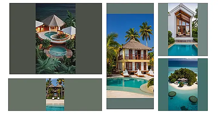 This resort design is like something out of a movie – a movie where you’re the main character and all you have to worry about is what kind of mocktail you’re going to order next. Those little hut-style houses with the thatched roofs? Super cool! And they’re practically floating over that amazing pool! It looks like the perfect place to chill with friends, or maybe even spot a celebrity trying to escape the paparazzi.