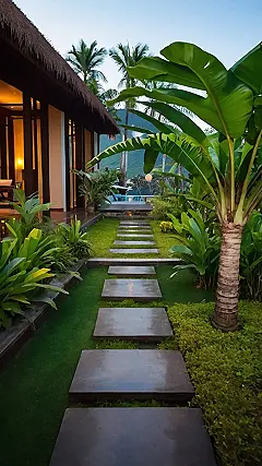 The way the pool is designed with those stepping stones makes it look like you could walk on water, though I still recommend swimming. Just think about it: you, your besties, and that turquoise water! This resort gives all the good vibes with its vibrant greenery and pops of orange making it a prime vacation spot. I’m already packing my bags and mentally preparing for some serious relaxation.