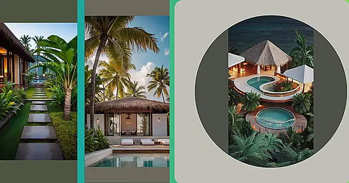 This resort isn’t just about good looks though, it’s all about creating a chill atmosphere. The whole place is surrounded by lush plants and palm trees, making you feel like you’re in your own secret jungle hideaway. And did you see those little pools attached to the houses? Talk about a quick dip before breakfast! I’m already dreaming about lounging by the water with a good book and absolutely zero homework. Vacation, here I come!