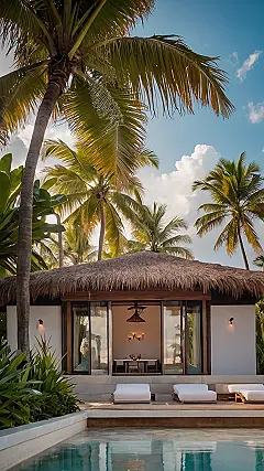 So, someone actually designed this place! Can you believe it? It’s like they took a beach, sprinkled in some palm trees, added two super-chill huts with haystack roofs, and then threw in a couple of beach chairs just begging for someone to nap on them. If this is resort design, sign me up for architecture school, because clearly, the hardest part is just picking a pretty place to build it!