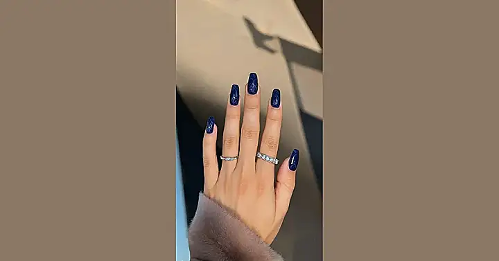 These nails are totally giving off “festive chill” vibes! Imagine cozying up by the fireplace with a mug of hot cocoa, wearing your favorite comfy sweater, and rocking these sleek, dark blue nails. They’re perfect for all those December holiday gatherings, from awkward family photos to rocking out at the school dance – they’re so sophisticated they’ll make even your grandma say “ooh la la!” Plus, the dark color is so on-trend, it’s practically a fashion statement all on its own!