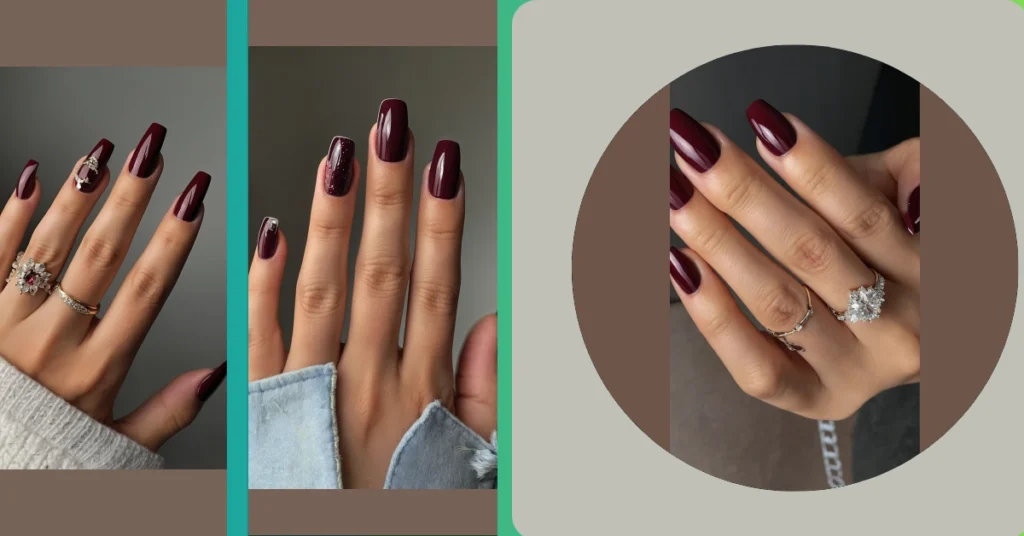 First up, let’s talk about shapes! Whether you fancy your nails square or oval, there’s a perfect design waiting just for you. Short nails can be just as elegant with the right touch of burgundy, while long nails lend themselves beautifully to intricate designs and even the occasional nail jewel. It’s all about playing with the shape that suits your lifestyle!