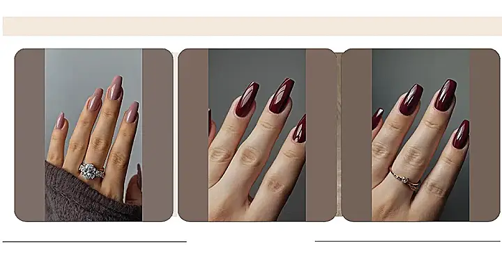 This picture shows some seriously stylish nails! They’re painted a deep, rich burgundy color that’s perfect for fall or winter. The color is so rich and elegant, it’s like a warm hug for your fingertips. And check out that shiny finish – it’s like wearing tiny jewels on your nails!
