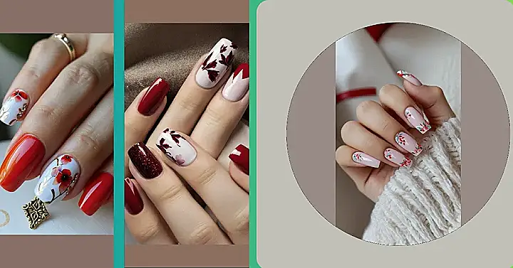 These nails are seriously cute! Imagine showing up to your Valentine’s Day dance with these amazing designs. They’ve got a mix of classic red polish – perfect for showing off your romantic side – and some super fancy white nails with pretty burgundy leaves. It’s like a sophisticated Valentine’s Day card, but on your fingertips! You’ll be the envy of everyone, and they’ll definitely notice your amazing nail game.