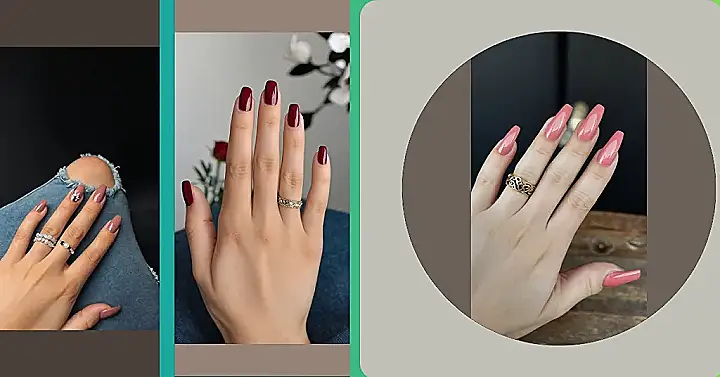 Those nails are seriously *fire*! That rich, deep red is perfect for fall, and it makes the sparkly ring look even more dazzling. Imagine walking around with these nails, feeling confident and stylish. You’ll be turning heads everywhere you go.