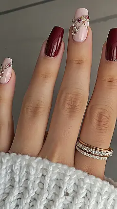 These nails are seriously glam! Imagine rocking these gorgeous burgundy and blush pink shades with delicate gold and sparkly accents on Valentine’s Day. They’re perfect for a romantic dinner date or even just hanging out with friends – because who doesn’t deserve to feel like a princess, right? Forget boring Valentine’s nails, these are way more fun and unique than your average heart design. Plus, they’re totally Instagram-worthy.