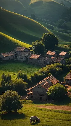Seriously, picture this: no buzzing traffic, just birds chirping and maybe the occasional sheep baa-ing hello. The hills are so gently curved, you could probably roll down them without getting hurt (though maybe don’t try it, just in case). And those golden fields? They look like they’re made of sunshine and deliciousness – maybe they even smell like freshly baked bread! This photo is the perfect definition of “beautiful villages nature photo,” don’t you think?