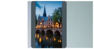 This image is like a postcard from a fairytale! Imagine strolling along the cobblestone streets of a charming European town. The buildings are all old and beautiful, with windows that look like they’re straight out of a storybook. The bridge is the perfect place to stop and admire the view, especially with the gentle reflection of the lights in the water. It’s like stepping into a scene from a movie, except you’re actually there, and it’s real!