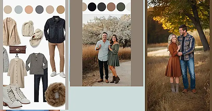 Imagine strolling through a field of golden leaves, wearing these cute outfits. Your family photo will be the envy of all your friends. From the casual dad vibes to the trendy mom look, this image gives you all the inspiration you need to create a picture-perfect fall photoshoot that you’ll cherish forever. So, gather your family, grab your cameras, and get ready for some fall-tastic fun! Don’t forget to choose your favorite colors from the color palette at the top – it’s like a cheat sheet for creating the perfect autumnal ensemble. Happy styling!