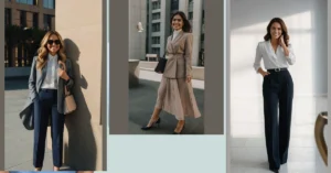 This outfit is totally rocking the “pink women outfits” vibe, but with a grown-up twist! It’s like a boss lady’s take on a pajama party. Imagine walking into school with this— heads would turn! The creamy white pantsuit is super chic, and that sweet pink belt and shoes? They’re the perfect pop of color, like adding sprinkles to your favorite cupcake. Who needs a boring uniform when you can rock this amazing, confident look?