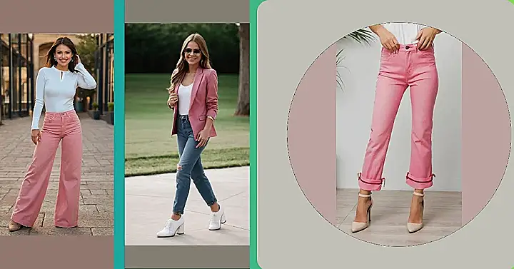 Let’s kickstart our journey into the world of pink jeans, shall we? Picture this: It’s summer, and you’re ready to hit the town. You throw on a pair of casual pink wide-leg jeans, clash them with a funky tank top, and accessorize with some metallic jewelry. Suddenly, you’re the fashion icon of the block! Pink truly has a magical way of transforming simple outfits into statement looks.