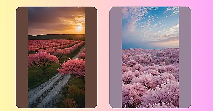 This picture is seriously dreamy! It’s the kind of view that makes you forget all your homework and just want to grab a friend (and maybe some pink lemonade) and take a thousand pictures. The soft light of the setting sun makes the pink trees glow, like they’re lit up from the inside. It’s a perfect example of how beautiful and magical nature can be – even if it makes you think your phone’s filters are on overdrive!