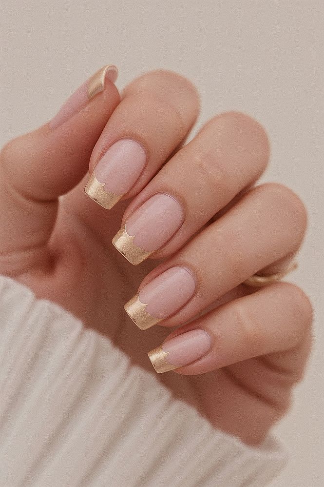 #4 Chic Nude & Gold French Tip Nails for Effortless Elegance