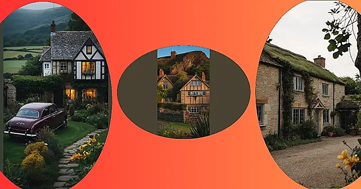 This charming English village house looks like it stepped straight out of a fairytale! With its half-timbered walls and cozy windows, it’s the kind of place you imagine having tea and biscuits with a friendly neighbor. The house is tucked away in a picturesque spot, nestled against a rocky hill that’s perfect for exploring. You might even spot a curious fox peeking out from behind the stone wall or a family of rabbits hopping through the garden.