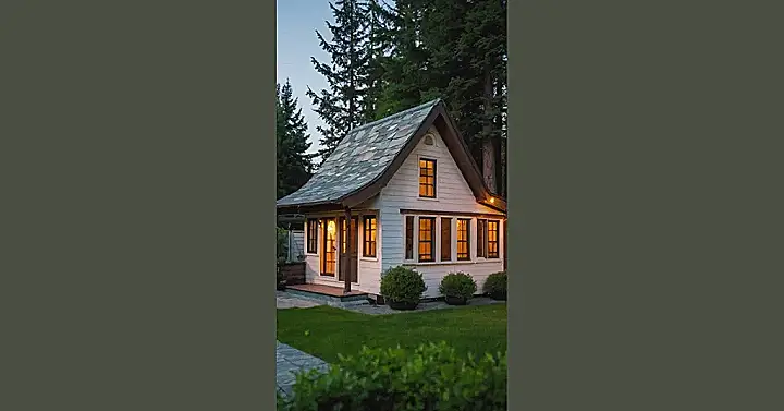 This little cottage house is like a dream come true for anyone who wants to escape the hustle and bustle of city life. It’s cute and cozy, with a classic white exterior and a sleek black roof. Imagine yourself relaxing on the porch, sipping hot cocoa, and watching the leaves change color in the fall. You could almost hear the crackling fire in the fireplace, right? It’s the perfect place to curl up with a good book or simply enjoy the peace and quiet of nature.