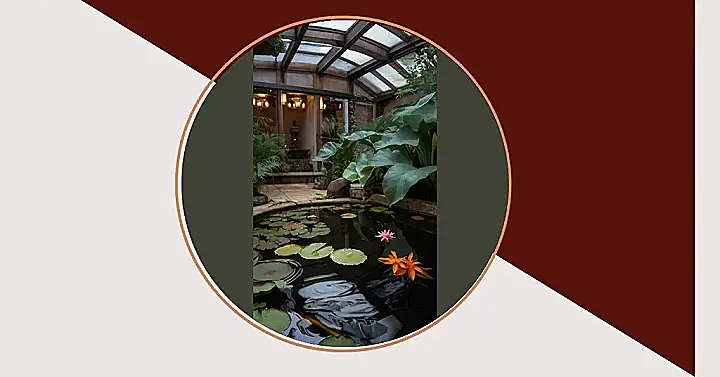 Imagine chilling in your living room, surrounded by lush greenery, and suddenly, you see a fish swimming! That’s exactly what an indoor pond can be like. It’s basically a mini-rainforest right in your house, where you can have all the plants and water features you want, without worrying about the weather. This indoor pond is so cool because it’s like a little slice of nature indoors, with big leaves and colorful flowers. It’s like stepping into a different world right there in your home.