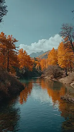 This picture is like a scene straight out of a fairytale! Imagine walking along a crisp autumn path, the leaves crunching under your feet. The air is cool and fresh, and the smell of pine needles fills your lungs. You reach a clearing and see the most beautiful river, glistening like a mirror reflecting the golden leaves of the surrounding trees. It’s like a hidden paradise tucked away in the heart of Europe, ready to be discovered!