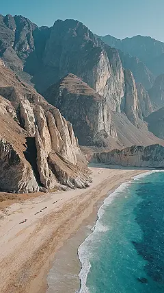 This picture is like a secret escape from a boring history class! Imagine yourself on a beach, tucked away between towering mountains. It’s like the mountains are protecting this little slice of paradise. You could spend hours exploring the hidden coves and watching the waves roll in. It’s like a scene from a movie where the hero finds their happy place!