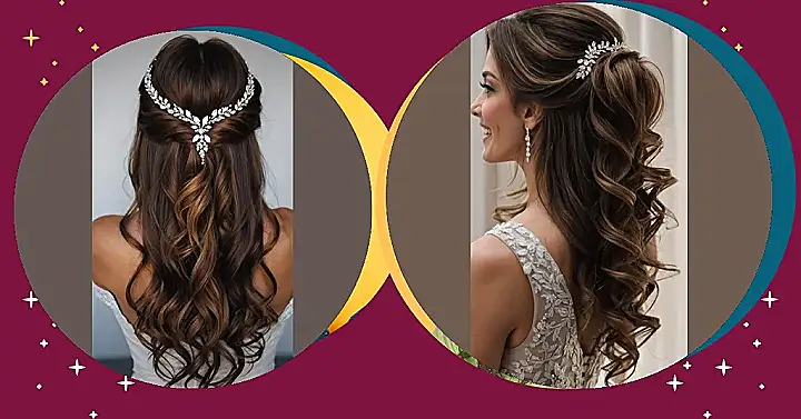 This hairdo is like a fairy tale come to life! It’s got all the dreamy vibes of a princess ready to walk down the aisle. Look at those gorgeous curls, they’re totally rocking that romantic look! And that sparkly hairpiece is like a crown for a queen! It’s not too over the top, but it definitely adds that touch of magic that makes you feel like you’re on top of the world. Plus, it’s super versatile—you can totally wear this style to a fancy party or even just a casual dinner date. It’s all about feeling your best, and this look will have you shining brighter than any diamond!