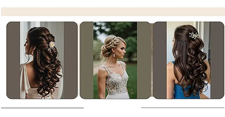 Getting ready for a wedding can be a bit of a mad dash, right? But your hair doesn’t have to be! This look is all about keeping it classy without spending hours in front of a mirror. The half-up style keeps things neat and lets your face shine, while the loose curls add a touch of fun. Plus, who can resist a cute flower and some sparkly clips? It’s the perfect balance of simple and stunning.