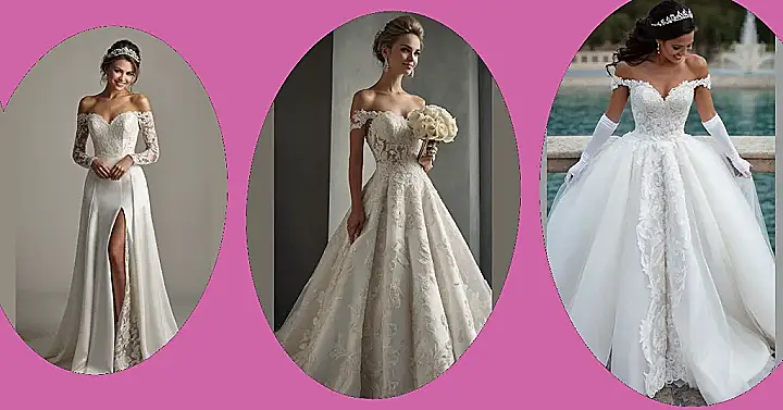 Planning your dream wedding? Well, buckle up, because this gown is pure magic! Just imagine floating down the aisle in this beauty. With its intricate lace and elegant off-the-shoulder design, it’s like something straight out of a fairy tale. All you need now is a prince charming and maybe a really good playlist for the reception.