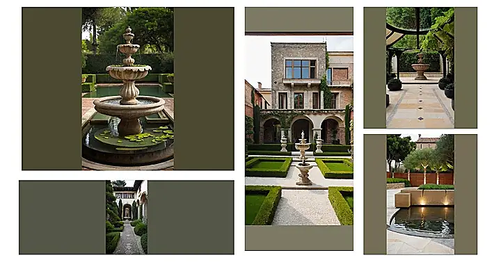 Imagine chilling in this garden with a slice of pizza bigger than your face! This Italian garden is way cooler than your grandma’s flowerbeds. It’s got smooth stone, a mysterious pond that probably holds wishes (or maybe just some really fancy goldfish), and enough chill vibes to power a whole semester of exams.