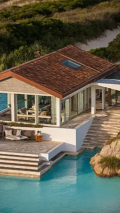 This kind of cool beach house vibe makes you want to ditch your shoes and just live in flip-flops. The design is all about letting the outside in, with those big windows and outdoor seating areas perfect for pretending you’re in a music video. It’s definitely designed for maximum chill, minimum fuss, though I bet cleaning sand out of everything is a full-time job. Still, living this close to the waves? Totally worth the sandy feet situation.