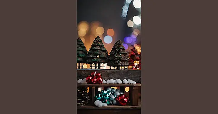 Imagine a cozy Canadian cabin, all decked out for Christmas. But instead of a perfectly symmetrical tree, we’ve got these three little, rustic, almost grumpy-looking evergreens. They’re like the Canadian Mounties of Christmas trees – a little rough around the edges, but undeniably charming! They’re surrounded by a dazzling city lightshow, which perfectly captures the festive spirit of a Canadian Christmas, even if the trees themselves look like they’ve seen a few snowstorms. It’s like they’re saying, “We’ve been through a lot, but we’re still here, ready to celebrate!”