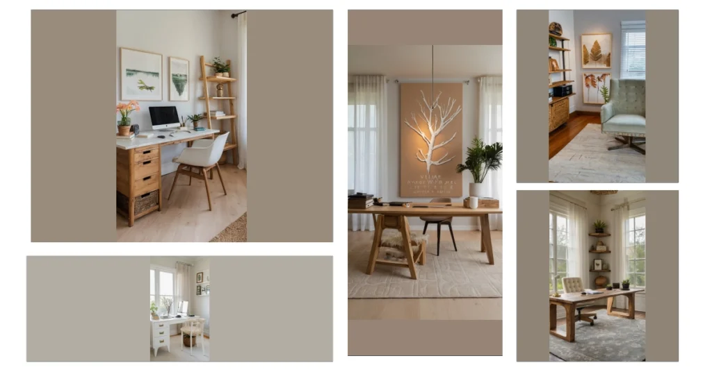 Imagine having a home office that’s so chill, it makes doing homework almost enjoyable! This setup is totally giving off relaxed vibes, like you’re working in a fancy forest, but with Wi-Fi. Plus, that tree art? It’s way cooler than those boring motivational posters your teachers hang up. Just picture yourself crushing that next essay assignment while channeling your inner artist surrounded by calming neutrals and natural light.