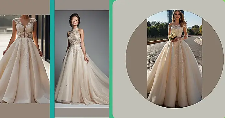 Imagine walking down the aisle in this dress! It’s like wearing a super fancy cloud made of lace and dreams. And the color! It’s not quite white, not quite pink, it’s like a secret whisper of color that says, “I’m here to celebrate!” Plus, it would totally photograph well, making your wedding pics Instagram gold. Just try not to trip when you’re doing the Electric Slide!