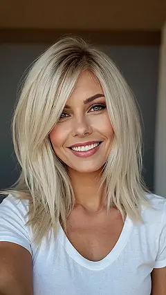 This girl’s hair is seriously goals! It’s like a sunbeam got lost and decided to become a hairstyle. That platinum blonde is so shiny and bouncy, you could probably bounce a quarter off it (don’t actually try that, though!). It’s the perfect blend of effortless cool and seriously glamorous, like she just stepped out of a magazine and into your Instagram feed. She’s rocking that casual sweater, proving you don’t need a fancy dress to look fantastic.