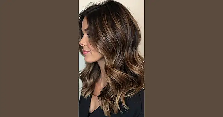 This girl’s hair is totally rocking the “women dark balayage hairstyle” look! It’s like a sunset on her head—all warm, yummy brown tones with some lighter pieces that catch the light. Seriously, imagine how much fun it would be to run your fingers through those soft, wavy locks! It’s the kind of hair you’d want to have if you were starring in your own beach-themed music video, complete with slow-motion shots and dramatic wind.