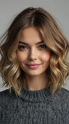 This model is rocking a hairstyle that’s totally trending right now! It’s all about those gorgeous layers – think effortless waves that frame your face perfectly, making your eyes sparkle and your smile even brighter. It’s like the hairstyle equivalent of your favorite comfy sweater—stylish but also super chill. Forget complicated updos; this look is all about low-maintenance, high-impact style. Imagine yourself looking this fabulous without spending hours in front of the mirror.