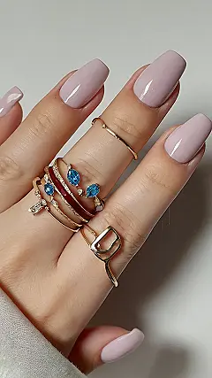 Those acrylics are so simple, yet so stunning! It’s like the nail polish version of vanilla ice cream – classic, satisfying, and a perfect canvas for adding something extra. And speaking of extra, check out all those rings! It’s like a jewelry party going on right there on those fingers.