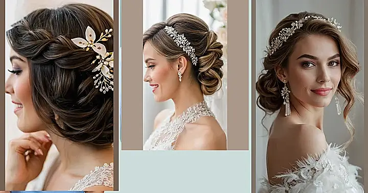 So, you’re rocking the short hair vibe and getting ready to say “I do”? Awesome! Who needs a Rapunzel-length braid when you can totally nail a chic updo like this? Seriously, look at that sparkle! It’s like a hair accessory party, and everyone’s invited. Plus, with shorter hair, your amazing earrings get to steal the show, meaning you can totally go big on the bling without looking like you raided a jewelry store.