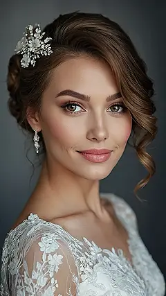 Seriously, who needs a ton of hair when you can pull off something this pretty? Think about it: less hair means less time getting ready, which means more time for dancing and eating cake! Plus, adding a delicate accessory like that flower clip is a total game-changer. It’s like the exclamation point on your perfect bridal look. So, if you’ve got short hair and wedding bells are ringing, get inspired and rock that style like the amazing bride you’re about to be!