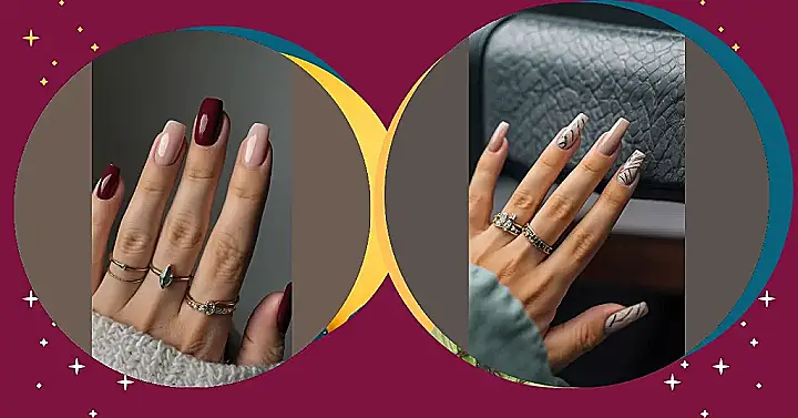 Those nails are totally rocking a rich, burgundy color, like a fancy dinner party for your fingertips! It’s like they’re saying, “Hey, look at me, I’m sophisticated and glamorous!” The design on the ring finger is super cool too. It’s like a tiny piece of art that’s totally stealing the show.