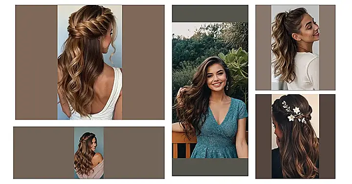 Imagine you’re a mermaid, but instead of living in the ocean, you’re rocking the coolest hairstyle ever. This picture shows a curly hairstyle that’s like a mix between “I’m going to the beach” and “I’m ready for a fancy party.” The hair is half-up, half-down, with a little twist at the top that makes it look like you put way more effort into it than you actually did (shhh, it’s a secret!).