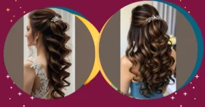 This hairstyle is like a fairy tale come true! The beautiful curls cascade down the model’s back, looking like a princess from a storybook. The little sparkly hair clip adds some extra magic, like a sprinkle of fairy dust. Honestly, it looks like the kind of hairstyle you’d want to wear to a fancy party or even a wedding!