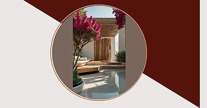 Seriously, this garden is next-level relaxing. The wooden steps are so smooth, you just wanna kick off your shoes and wander around. And that pool is so shiny, it’s like a giant mirror reflecting all the peace and quiet. This garden proves that you don’t need a million plants and a dancing gnome to have a killer backyard; sometimes, less is seriously more.