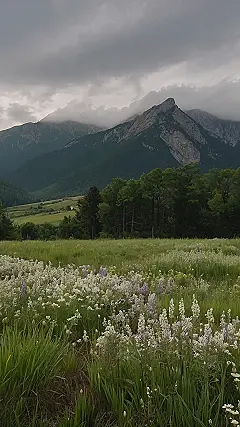 This picture is like a postcard from a secret, peaceful place! Imagine yourself strolling through a field of wildflowers, the gentle breeze whispering secrets through the tall grass. Those majestic mountains in the background look like they’re guarding the whole peaceful scene, keeping it safe from grumpy grownups and their boring meetings. It’s the kind of spot where you could totally forget about homework and just chill with the butterflies and the bees. This totally screams “peaceful aesthetic nature places,” right?
