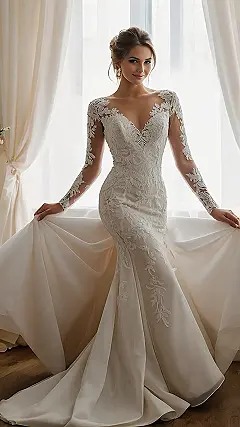 Planning your big day and stressing about whether to freeze your arms off? Don’t sweat it! This bridal dress is like a hug in fabric form, only way fancier. It’s got these awesome long sleeves that are perfect for keeping you warm if you’re getting hitched in a chilly church or on a windy beach. Plus, the lace details are so pretty, you’ll look like a fairy princess, but one that’s also totally practical and not shivering!