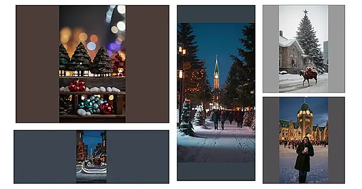 Imagine strolling down a Canadian street, the air nippy but cozy, with twinkling lights strung across snow-covered buildings like a sparkly necklace. A giant Christmas tree, brighter than a candy cane, stands proudly in the center, casting a magical glow on everything. It’s like a postcard come to life, only better because you’re actually there, maybe even with hot chocolate in hand, watching kids bundled up in their winter gear, their breath puffing out in little white clouds as they excitedly head towards Christmas festivities. It’s pure Christmas magic, Canadian style!
