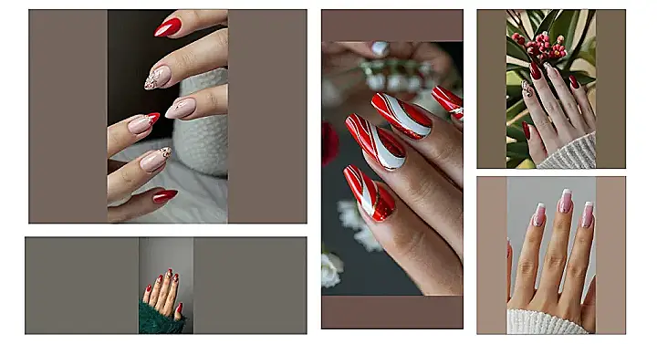 These nails are so festive, they’re practically singing carols! Look at those snazzy red and white designs – perfect for a simple Christmas look without being too much. Forget elf shoes, these are the real statement pieces this holiday season. They’re like mini-masterpieces on your fingertips, ready to spread some Christmas cheer wherever you go!