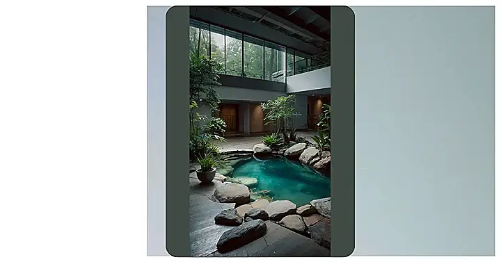 Imagine having your own little slice of nature right in your house! This indoor pond is like a mini-oasis, complete with a pretty pink lotus flower that’s probably wondering how it ended up in a building. The cool thing is that the pond is nestled right up against a wall made of dark grey stone with little strips of light shining through it. It’s kind of like a zen-style meditation space. Maybe that’s why the lotus looks so peaceful, like it’s totally chill about being indoors.